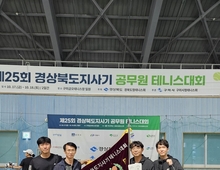 [팩트신문 = 이상혁 기자] 고령군(군수 이남철)은 제25회 경상북도지사기 공무원 테니스 대회에서 고령군청 공무원 테니스팀(CLUB G.T)이 우승을 차지했다고 밝혔다. 10월 17일부터 18일까지 이틀간 경북 구미시 금오테니스장에서 개최된 이번 대회에서 예선리그 조 1위로 통과하고 8강에서 경주시를 4강에서 구미시를 물리치고 결승에서 성주군을 맞아 5복식 중 4경기 만에 3승을 하여 정상에 올랐다. 이번 대회에서 우승한 고령군은 대회가 생기고 첫 우승을 차지하는 영광을 가졌다. 한편 최우수 선수로는 고령군청 테니스회 이명희 회장이 선정되었다. 이명희(고령군 덕곡면장) 고령군 선수단장은 “이 대회는 공인의 자세로 지역 사회를 위해 봉사하는 공무원들이 잠시 공무에서 벗어나 직원들 상호간의 화합과 친목을 도모하는 것에 의미가 크며, 모든 선수들이 힘을 모아 좋은 성적을 내었다.”고 첫 우승 소감을 밝혔다. 고령군(군수 이남철)은 한 사람도 안 다치고 열심히 경기에 임하여 도지사기 공무원 테니스대회 첫 우승을 축하하며, 이번 대회를 통해 도내 공무원간의 상호 교류와 화합의 장을 마련하여 활기찬 직장 분위기 조성이 되었길 바란다고 전했다.
