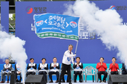 [팩트신문 = 이상혁 기자] 남북9축고속도로 추진협의회는 2025년 10월 15일(수) 영양 공설운동장에서 열린 제55회 영양군민 체육대회와 연계하여, 강원‧경북 10개 시‧군이 함께하는 ‘남북9축고속도로 조기건설 기원’ 연합 퍼포먼스를 개최했다. 행사는 ‘남북9축, 함께 잇다’ 슬로건 아래 강원·경북 10개 시‧군 대표단이 운동장 양 끝에서 동시에 출발, 중앙에 위치한 제막무대에서 하나로 모여 ‘남북9축 고속도로’ 표지판을 공동 제막하는 순으로 진행됐다. 서로를 향해 한 걸음씩 다가가는 발걸음은 그간의 기다림과 주민들의 간절한 염원을 한 화면에 압축했고, 제막의 순간에는 ‘더 가까워진 일상’에 대한 약속과 국가균형발전에 대한 분명한 메시지를 또렷이 전달했다. 특히 군민 1만여 명이 지켜보는 앞에서 펼쳐진 이번 퍼포먼스는 그 당위성과 가능성을 현장의 언어로 또렷이 시각화했다. 분산돼 있던 열 곳의 발걸음이 중앙에서 하나로 이어지며 “남북9축은 결국 하나의 길로 완성될 것”이라는 메시지를 강하게 각인시켰고, 질서정연한 진행과 뜨거운 호응 속에 행사는 마무리됐다. 남북9축고속도로는 강원 양구에서 경북 영천까지 내륙을 관통하는 국가 기간 교통축으로, 접근성 취약으