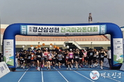 [팩트신문 = 이상혁 기자] 경산시는 23일 경산시민운동장에서 전국 마라톤 동호인 900여 명이 참가한 가운데 「시민 건강과 지역발전이 함께 뛰는 마라톤 축제」라는 슬로건으로“2025 경산 삼성현 전국 마라톤대회”를 개최하였다. 삼성현 전국 마라톤대회는 경산시체육회 주최, 경산시육상연맹 주관으로, 경산시민운동장에서 출발하여 (구)미래대 삼거리, 대구한의대 삼거리, 경산중앙병원 네거리를 지나 경산시민운동장에 도착하는 10km 코스로, 남녀 개인전 및 단체전으로 경기를 진행하였다. 경산시는 경산경찰서, 경산소방서, 모범운전자회, 자원봉사센터 등 유관 기관의 협력과 시민들의 사전 대회 안내를 통해 마라톤 구간 교통 통제에 따른 불편을 최소화하였으며, 또한 당일 130여 명의 안전요원을 배치하여 도로 교통 통제와 코스 안내 등으로 안전하게 대회를 마무리하였다. 대회 결과, 남자부는 부산진구 감진규 선수가 32분 55초로 우승하였고 2위는 창원시 김종진, 3위는 영천시 김기원 선수가 차지하였으며, 여자부는 달성군 정순연 선수가 37분 14초로 우승하였고 2위는 경산시 정혜진, 3위는 울산 중구 원주원 선수가 차지하였다. 조현일 경산시장은 “본 대회가 경찰, 소방, 자