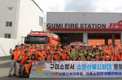 [팩트신문 = 이상혁 기자] 구미소방서(서장 조유현)는 2025년 10월 23일(목) 13시, 구미소방서 청사에서 **‘구미소방서 소방산불진화대 발대식’**을 개최했다. 이번 발대식은 최근 건조한 기후와 강풍 등으로 인한 산불 위험이 높아짐에 따라, 산불 초기 대응 역량을 강화하고 산불로 인한 인명 및 재산 피해를 최소화하기 위한 목적에서 추진되었다. 행사에는 소방공무원, 의용소방대원 등 100여 명이 참석했으며, 119산불신속대응팀(3개팀 25명), 의용소방대 산불진화대(지원팀(3개팀 90명)·기동팀(3개팀 30명))이 정식으로 출범했다. 이날 발대식은 산불 발생 시 신속한 출동과 효율적인 현장 지휘체계 구축을 다짐하는 자리로 마련되었다. 조유현 구미소방서장은 “최근 기후변화로 인한 산불 발생이 늘고 피해 규모도 커지고 있다”며, “이번에 출범한 소방산불진화대가 지역 산불 대응의 중추적 역할을 수행하여 시민의 생명과 재산을 지키는 데 앞장설 것”이라고 밝혔다. 한편 구미소방서는 이번 발대식을 계기로 산불 취약지역 순찰 강화, 예찰활동 확대, 지역주민 대상 예방 홍보 등을 지속적으로 추진할 예정이다.