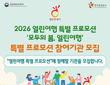 [팩트신문 = 이상혁 기자] 안동시는 한국관광공사가 주관하는 ‘모두의 봄, 열린여행’ 특별 프로모션에 적극 참여하기 위해, 관내 관광시설 운영사 및 사업체를 대상으로 오는 3월 6일(금)까지 참여기관을 모집한다. 이번 프로모션은 4월 20일 ‘장애인의 날’을 맞아 관광취약계층의 여행 접근성을 높이기 위해 4월 한 달간 진행될 예정이다. 참여를 희망하는 관광시설(숙박․식음료․카페 등), 여행사, 체험시설 등의 운영사는 입장료․체험료 할인, 숙박할인, 특별 메뉴 제공 등 자체적인 할인 또는 혜택을 제안해 신청할 수 있다. 온라인 폼으로 신청받은 참여사의 제안을 한국관광공사의 평가 후 3월 말 최종 참여사가 확정될 예정이다. <참여 신청> 참여사의 특별 프로모션 상품 등은 한국관광공사 ‘대한민국구석구석’, ‘열린관광, 모두의 여행’ 공식 누리집 내 특별 프로모션 전용 페이지에 입점하게 되고, SNS 홍보를 통해 지원한다. 자세한 내용은 ‘열린관광, 모두의 여행(access.visitkorea.or.kr)’ 혹은 안동시청 누리집 시정소식의 공고를 통해 확인 할 수 있다. 안동시 관계자는 “무장애관광 인프라 확충과 서비스 개선을 통해 누구나 편안하게 안동을 방문하고 즐길 수 있는 관광도시를 만들기 위해 노력하고 있다”며 “관광 사업자의 많은 관심과 참여를 기대한다”고 밝혔다.