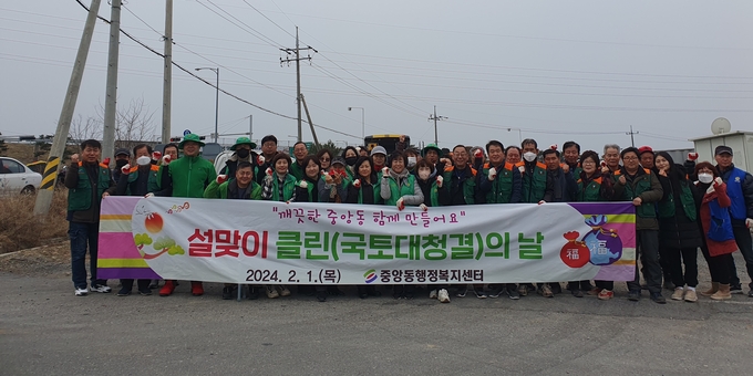 중앙동은 1일 다가오는 설을 맞아 통장협의회, 새마을회, 바르게살기협의회, 자연보호협의회, 자율방범대 등 70여 명이 참석한 가운데 중앙동 오미교차로 일대에서 설맞이 클린(국토대청결) 운동을 실시했다.