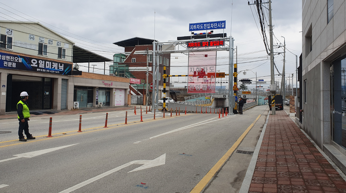 해당진입차단 시설은 집중호우에 따른 지하차도 수위가 일정 수준 이상으로 높아지면 수위계의 센서를 통해 자동으로 지하차도 진입금지를 알리는 시설이며, 무선통신을 이용해 핸드폰 어플(앱)로도 원격 제어가 가능하다.