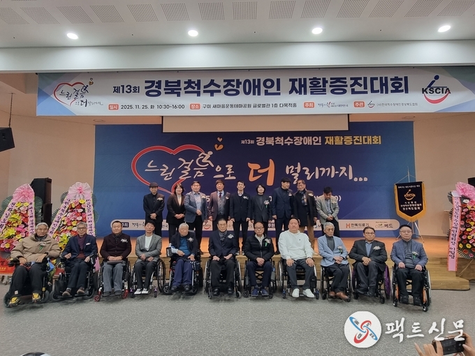 구미시는 지난 25일 새마을테마공원 글로벌관 다목적홀에서 사)한국척수장애인협회경북협회(회장 최영수) 주관으로 ‘제13회 경북척수장애인 재활증진대회’를 열었다. 경북 11개 척수지회 회원과 가족, 관계자, 내빈 등 약 650명이 참석해 중증 장애로 인한 어려움을 함께 극복하고 재활 의지를 북돋는 자리로 마련됐다.