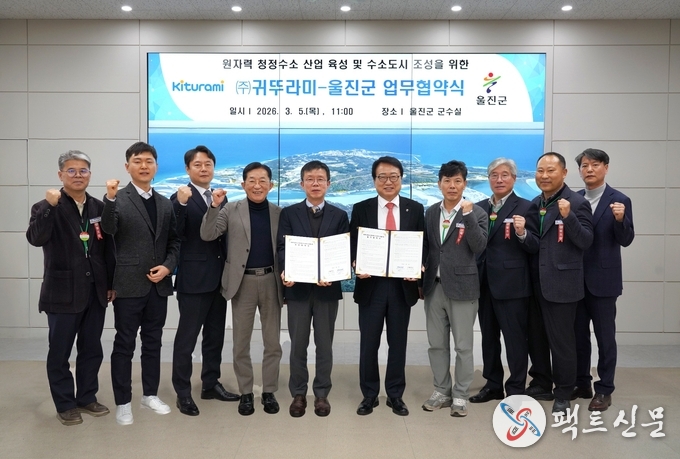 울진군은 3월 5일 울진군청에서 에너지 설비 전문기업 ㈜귀뚜라미와 ‘원자력 청정수소 산업 육성을 위한 업무협약(MOU)’을 체결했다.