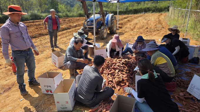 성주군 금수강산면 지역사회보장협의체(공공위원장 조형철, 민간위원장 장재이)는 10월 1일(수) 오전 금수강산면 명천리 소재 행복씨앗 텃밭에서 협의체 회원 20여명과 함께 지역특화 영농사업인 고구마 수확이 있었다.