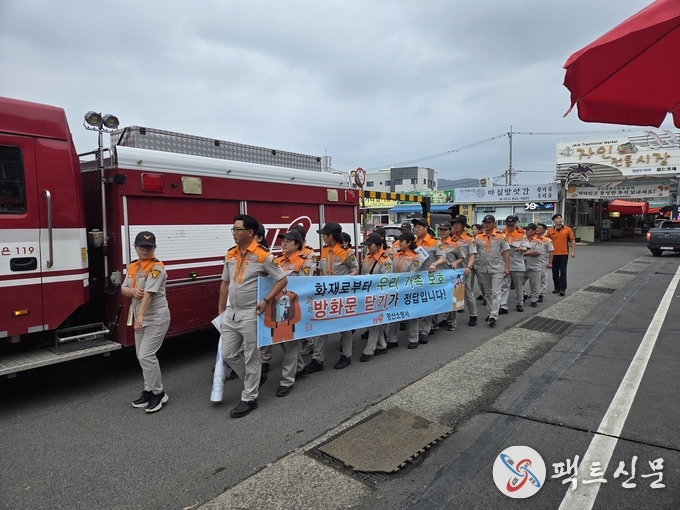 의용소방대원들은 행사장 주변 일대를 순찰하며 주택용 소방시설(소화기·감지기) 설치 홍보, ‘불나면 대피 먼저’ 실천, 방화문 닫기 생활화 등을 안내하고, 시민들에게 화재예방 리플릿과 홍보물을 배부하며 안전문화 정착을 적극 독려했다.