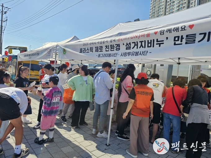 현장에서는 구미시 자원봉사 캐릭터 ‘자봉이’를 활용한 굿즈 만들기를 비롯해 △에코 플로깅 △공기정화 수경재배 식물키우기 △친환경 설거지 비누 만들기 △양말목 업사이클링 △솜사탕·팝콘 나눔 △손 마사지 재능봉사 등 다양한 프로그램이 운영됐다. 이를 통해 생활 속 환경 보호의 중요성을 알리고, 미래 세대를 위한 건강한 마을 환경 조성에도 힘을 보탰다.