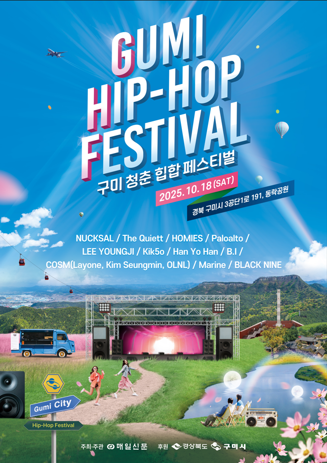 구미시는 오는 10월 18일 동락공원에서 청춘들의 열정과 힙합 음악이 어우러지는 「2025 구미청춘힙합페스티벌」을 개최한다. 이번 공연은 오후 3시 30분부터 밤 10시까지 진행되며, 전석 무료(스탠딩존)로 선착순 입장할 수 있다.