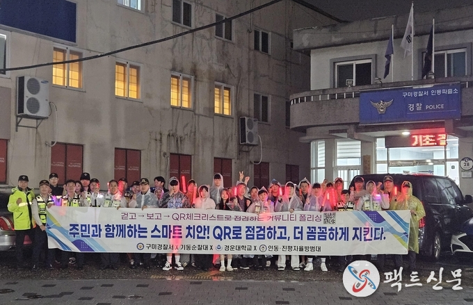이번 순찰은 지난 9월에 실시된 주민 참여형 QR범죄예방진단 결과를 토대로, 인동 로데오거리 등 다중운집장소의 범죄취약요소를 해소하고 주민들의 체감안전도를 높이기 위해 마련됐다.