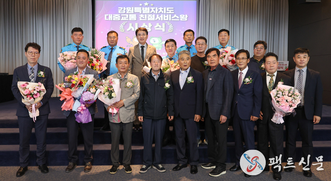 강원특별자치도(도지사 김진태)는 10월 16일(목) 원주 인터불고 호텔에서 대중교통 친절서비스왕 시상식을 개최했다고 밝혔다.