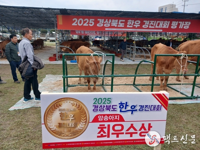 예천군(군수 김학동)은 21일, 영주시 문정둔치에서 열린 ‘2025년 경상북도 한우경진대회’에서 예천군 풍양면 김영휘 씨가 암송아지 부문 최우수상을 수상해 예천한우의 우수성을 널리 알렸다고 밝혔다.