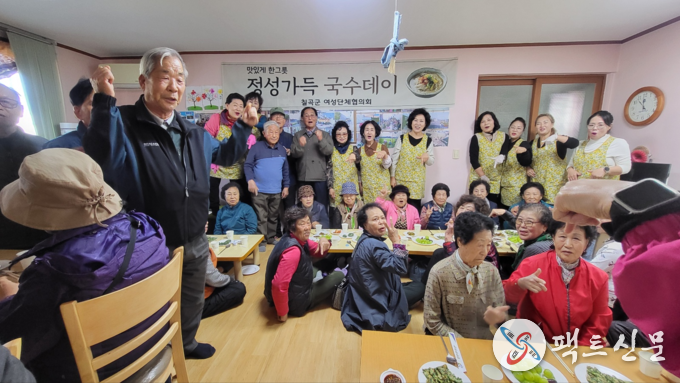 칠곡군 여성단체협의회(회장 강영미)는 10월 28일(화) 약목면 복성3리 경로당에서 지역 주민들과 함께하는‘정성가득 국수데이’나눔 행사를 실시했다.
