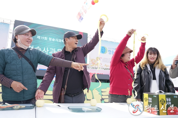 이 외에도 내 고장 청송을 제대로 알고 올바른 인성을 함양하기 위한 ‘제20회 내고장 청송 알기 퀴즈대회’가 열렸고, ‘사과 올림픽’, ‘도전-사과 선별 로또’, ‘꿀잼-사과난타’, ‘황금사과를 찾아라’ 등 다양한 체험 프로그램이 연일 성황을 이루며, 관광객들에게 색다른 즐거움을 선사하고 있다.