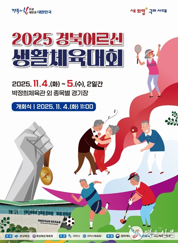 구미시는 경상북도와 경상북도체육회가 주최하고 구미시와 구미시체육회가 주관하는 「2025 경북어르신생활체육대회」를 11월 4일부터 5일까지 이틀간 구미시 일원에서 개최한다.