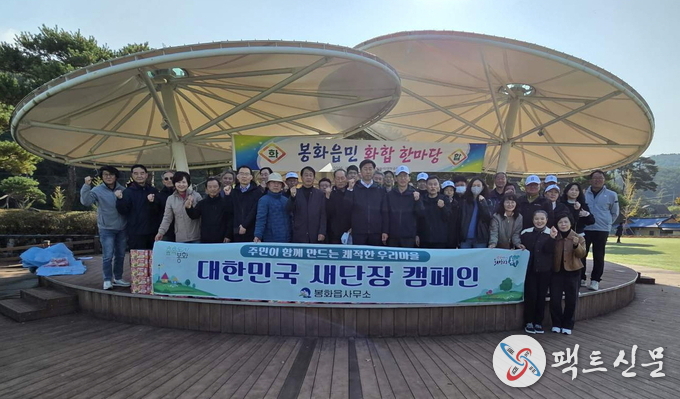 봉화읍은 지난 10월 31일 봉화읍체육회와 함께 행정안전부가 추진하는 ‘대한민국 새단장 캠페인’에 참여해 은어송이 테마공원 일대에서 환경정화활동을 펼쳤다.
