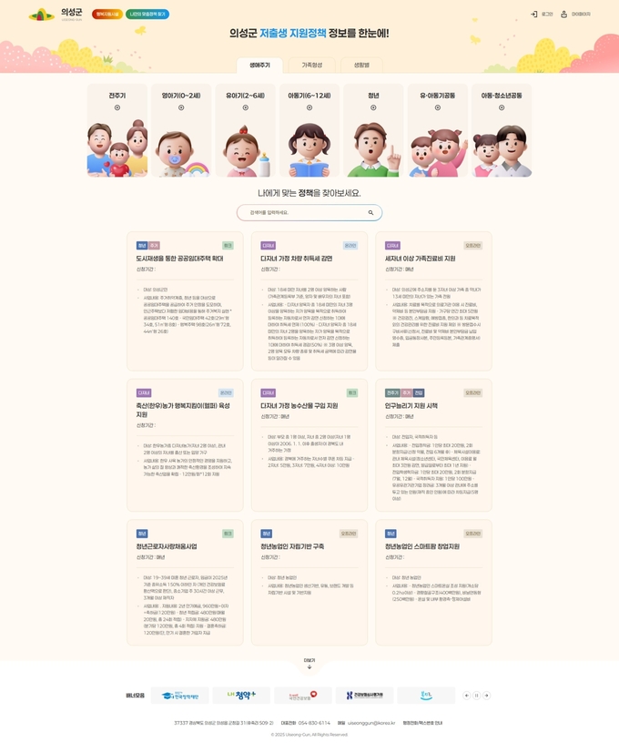 김주수 의성군수는 “저출생 문제는 단순한 출산 장려가 아닌, 군민의 삶 전반을 안전하고 편리하게 만드는 일과 맞닿아 있다”며 “이번 저출생지원정책포털을 통해 군민이 필요한 정보를 쉽고 빠르게 확인할 수 있기를 바라며, 앞으로도 이용 편의를 높이기 위한 서비스를 지속 보완해 나가겠다”고 말했다.