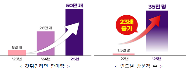 * 갓튀긴라면 판매랑 ’23년 6만개 → ’24년 26만개 → ’25년 50만개