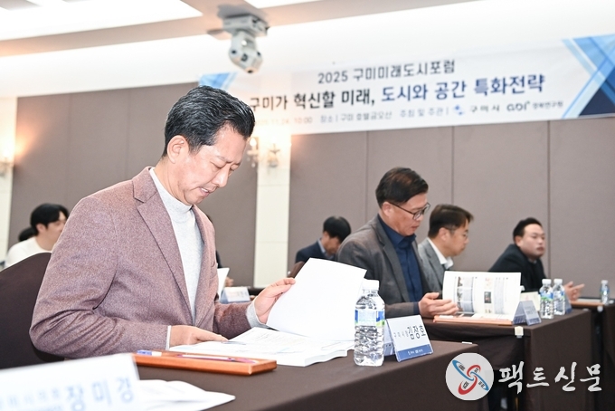 구미시는 11월 24일 호텔 금오산에서 ‘구미가 혁신할 미래, 도시와 공간 특화 전략’을 주제로 「2025 미래도시포럼」을 열었다. 포럼에는 기관·단체와 기업 관계자, 공무원 등 100여 명이 참석해 미래도시 분야의 전략 방향을 공유했다.