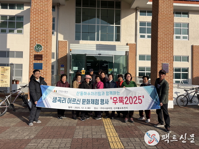 구미도시공사는 지역사회와의 지속적인 상생 발전 노력의 일환으로, 문화적으로 소외되기 쉬운 농촌 지역 어르신들을 위한 문화체험 프로그램 '우뚝2025'를 지난 12월 2일(화) 성공적으로 이어갔다고 밝혔다. 지난 습례2리 행사에 이어 선산읍 생곡리 어르신 20여분을 모시고 진행된 이번 프로그램은 구미도시공사가 운영 및 관리하는 시설을 적극 활용하여 어르신들의 사회적 고립감을 해소하고 삶의 만족도를 높이는 데 크게 기여했다. 이는 지역소멸 극복에 대한 지역사회 공동의 노력에 동참하고 지역민과의 유대 관계를 더욱 강화하는 의미 있는 활동이다.