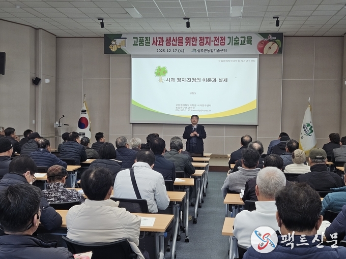 성주군은 12월 17일, 농업기술센터 2층 대강당에서 관내 사과재배 농가 100여명을 대상으로『고품질 사과 생산을 위한 정지·전정 기술교육』을 실시했다.