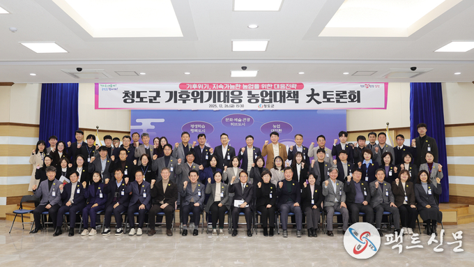 청도군(군수 김하수)은 지난 26일「기후위기 대응 농업대책 大토론회」를 개최하여 기후변화로 인한 농업 환경 변화에 대응하기 위한 다양한 정책 방향을 논의하고, 주요 소득작물의 안정적 생산을 저해하는 요인을 선제적으로 발굴하고 지역 여건에 맞는 지속가능한 농업 전략 마련에 나섰다.