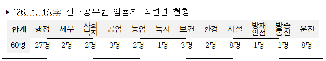 ‣ `26. 1. 15.字 신규공무원 임용자 직렬별 현황