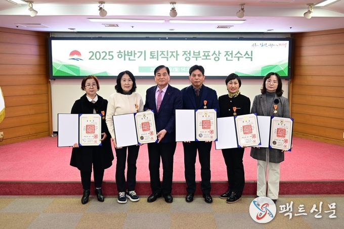 김천시(시장 배낙호)는 지난 19일, 시청 2층 회의실에서 ‘2025년 하반기 퇴직 공무원 정부포상 전수식’을 개최했다.