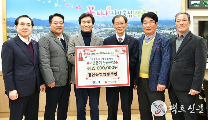 조현일 경산시장은“늘 지역과 함께해 온 경산농업협동조합의 따뜻한 나눔에 깊이 감사드린다”며“기탁해 주신 성금은 도움이 필요한 이웃에게 소중히 전달되어 따뜻한 온기로 이어질 수 있도록 하겠다”고 말했다.