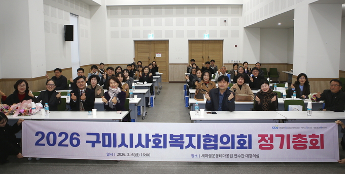 구미시는 구미시사회복지협의회 주관으로 지난 6일 새마을운동테마공원 연수관 대강의실에서 임원과 회원 등 40여 명이 참석한 가운데 「2026년 구미시사회복지협의회 정기총회」를 열었다.