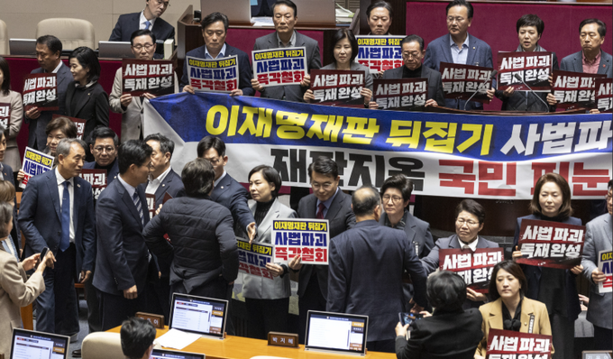 국민의힘 국회의원들은 입으로만 "죽기로 싸우겠다" 읊조리지 마라. 나라의 근간인 3권분립이 무너지고 대법원이 정권의 하수인으로 전락하는 이 망국적 상황에서, 종이 쪼가리나 읽으며 시간을 때우는 것이 정녕 사즉생의 각오란 말인가? 지금 국민이 원하는 것은 안락한 국회의사당 안에서 읊어대는 고상한 선비들의 훈수가 아니라, 적들의 칼날 앞에서도 한 치 물러섬 없는 처절한 저항의 야성이다. 의원직을 내던지고 온몸을 투신해 의사일정 자체를 마비시키는 처절한 결기다.