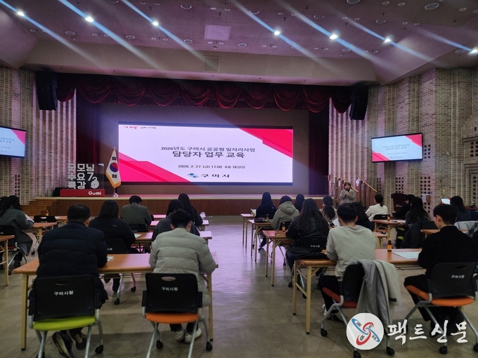 구미시는 지난 27일 시청 대강당에서 ‘2026년 구미시 공공형일자리 사업 담당자 업무교육’을 실시하고 상반기 사업 추진에 본격 돌입했다.