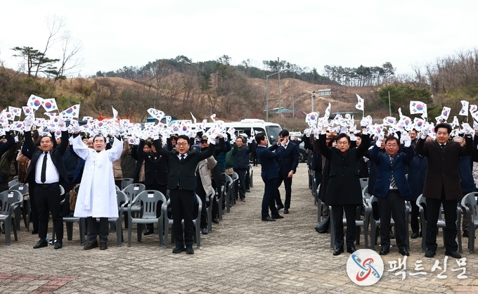 특히 마지막 순서인 만세삼창에서 윤종구 광복회 울진지회장의 선창에 맞춰 참석자들이 힘차게“대한독립 만세”를 외치며, 독립을 염원했던 선열들의 숭고한 뜻을 되새기는 뜻깊은 시간을 가졌다.