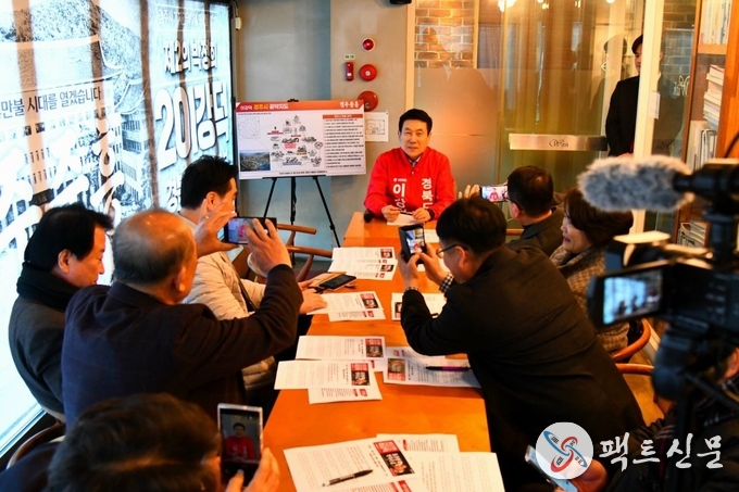 이강덕 국민의힘 경북도지사 예비후보는 9일 경주시에서 기자간담회를 열고 경주 건천을 SMR(소형모듈원자로) 가속기와 미래차 산업이 결합된 경제자유구역으로 신규 지정하겠다는 구상을 내놨다.
