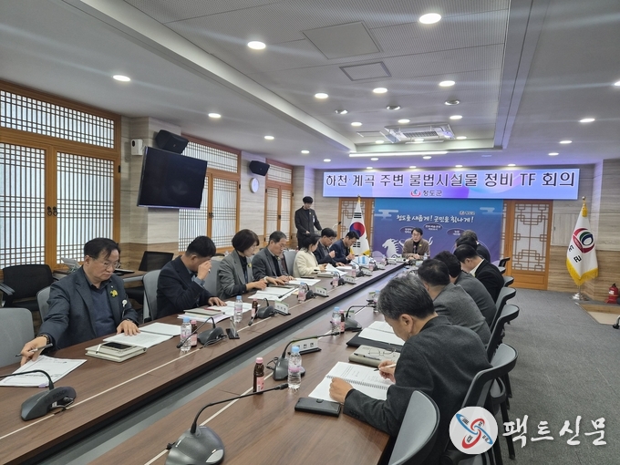 청도군은 지난 11일 하천·계곡 주변 불법시설물 정비 TF회의를 개최했다. 이번 회의는 최근 국무회의에서 제시된 대통령 지시사항에 따른 후속 조치로, 관련 부서장 및 각 읍·면장이 참석하여 하천·계곡 주변 불법 시설물에 대한 전수 재조사와 정비 방안 등을 공유했다.