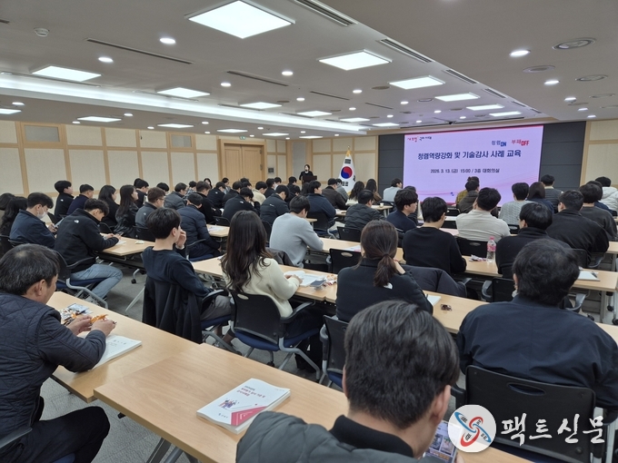 이번 교육은 인허가·재세정 업무 담당자와 기술직 공무원 등 90여 명을 대상으로 진행됐다. 주요 반부패 법령에 대한 이해를 높이고 원가계산 실무 역량을 강화해 부패 위험 요인을 사전에 차단하는 데 초점을 맞췄다.