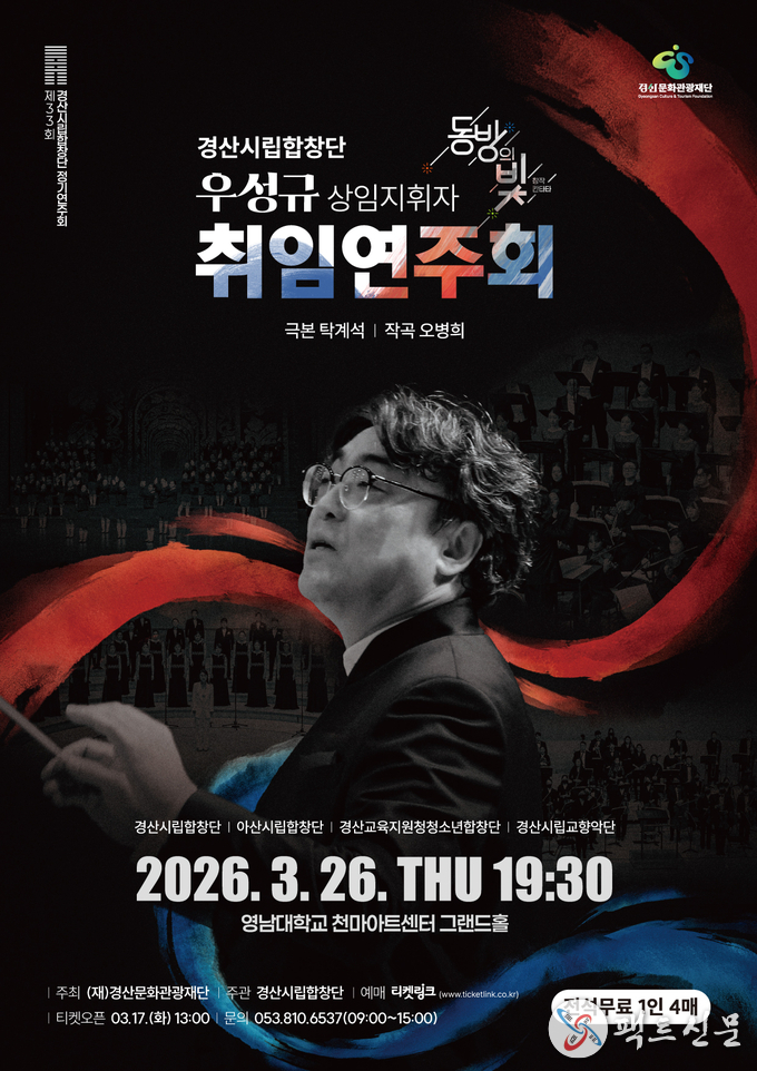 이번 공연은 새롭게 취임한 우성규 상임지휘자의 첫 공식 무대로, 경산시립합창단의 새로운 출발과 음악적 비전을 시민들에게 선보이는 뜻깊은 시간이 될 예정이다.