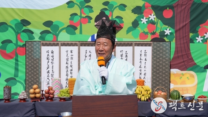 행사는 오전 10시 30분 참가자 접수와 풍물공연을 시작으로 본격적인 일정에 들어갔다. 오전 11시부터 진행된 1부 행사에서는 전통 제례 형식의 풍년기원제가 열려 초헌, 축문 낭독, 아헌, 종헌 순으로 엄숙하게 진행됐으며, 참석자들은 합동 분향과 헌주를 통해 한 해 농사의 풍년과 지역 농업의 발전을 기원했다.