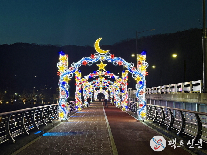 루미나리에는 조명을 활용해 구조물과 공간을 연출하는 야간 경관 조성 기법으로, 이번에 설치된 시설은 별과 달을 모티브로 한 조형물과 곡선형 아치 구조로 구성됐다. 교량 전 구간에 총 10개소가 설치돼 점등 시 ‘빛의 터널’과 같은 환상적인 경관을 연출한다. 시는 이를 통해 방문객들에게 새로운 볼거리를 제공하고 야간 포토존으로서의 기능을 강화할 계획이다.