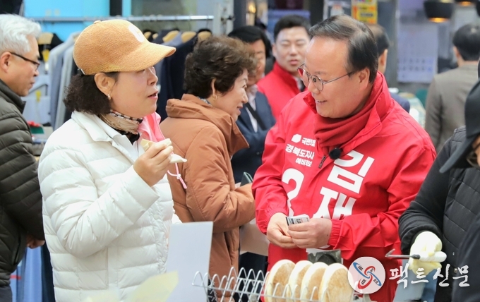 김재원 경상북도지사 예비후보는 21일 본선 경선 첫날 구미 새마을중앙시장을 찾아 민생 현장을 직접 점검했다.