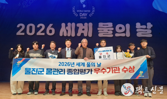 울진군은 지난 3월 20일‘2026년 세계 물의 날’을 맞아 열린 기념식에서 물산업 육성 및 상·하수도 분야의 탁월한 성과를 인정받아‘물관리 유공기관’표창을 수상했다.