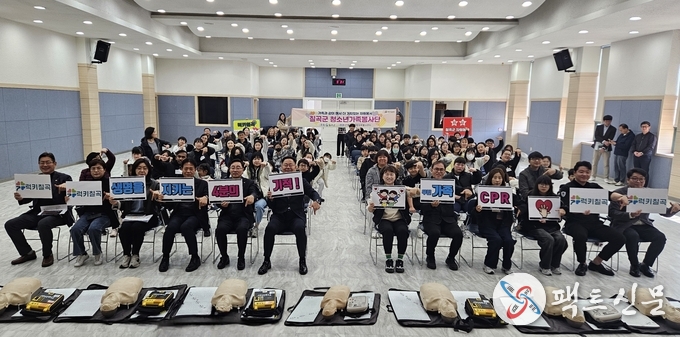 칠곡군종합자원봉사센터는 지난 21일 칠곡군교육문화회관 소공연장에서 LG전자 퓨처파크 통합관제센터(안전반장 문희종)와 함께 칠곡군 청소년가족봉사단을 대상(37가족 102명)으로‘가족 CPR 교육'을 실시했다.