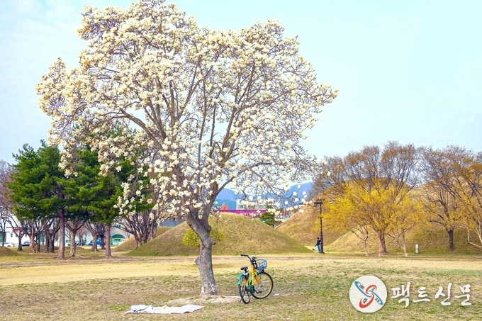 도심 가까이 스며든 목련의 풍경, 노서동 고분군