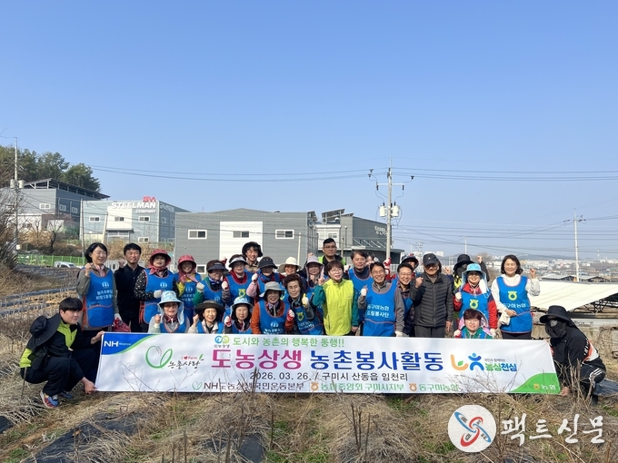 26일 본격적인 영농철을 맞아 풍년농사를 기원하며 농촌 일손돕기의 필요성을 국민에게 알리고 인건비·영농자재비 상승 및 인력수급에 어려움을 겪는 농업인 지원을 전사적으로 나서기 위해 구미시 산동읍 임천리 일대 취약농가에서 ‘범농협 영농지원 전국 동시 발대식’을 갖고 영농폐비닐 수거 작업 농촌일손돕기를 실시했다.