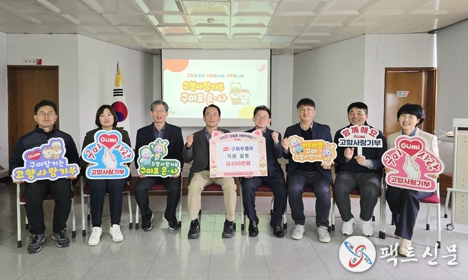 구미시는 구미우체국 직원들이 자발적으로 뜻을 모아 고향사랑기부금 400만 원을 기탁했다고 밝혔다.