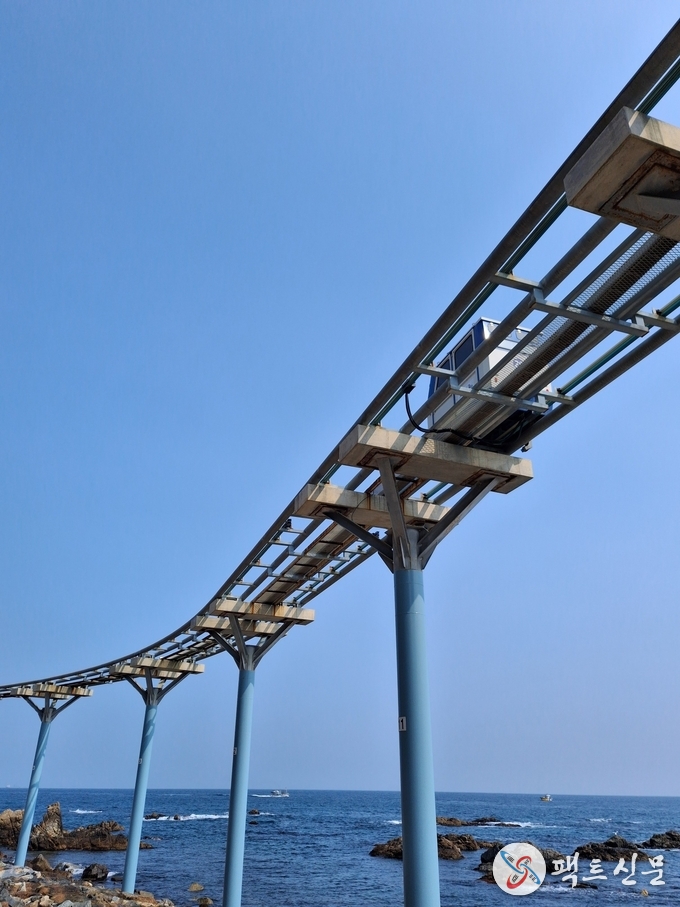 울진군의 대표 관광시설인 죽변해안스카이레일이 한국교통안전공단(TS)의 정기검사 결과를 반영, 관광객들의 안전을 위해 재검사 완료 시까지 운행을 일시 중단한다.