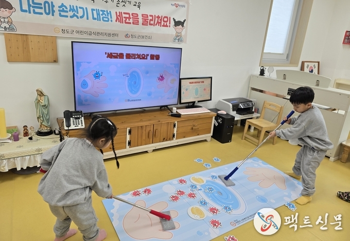 이번 위생교육은 ‘나는야 손씻기 대장! 세균을 물리쳐요!’ 라는 주제로 영유아들에게 꼭 필요한 개인위생 관리 습관이 어릴 때부터 형성될 수 있도록 하기 위해 마련되었으며, 청도군 어린이급식관리지원센터와 연계하여 운영한다.