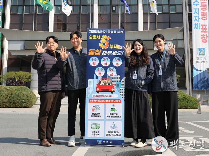 이번 5부제는 차량번호 끝자리 기준 요일별 운행을 제한하는 방식으로, 경주시 공용차 145대와 직원의 10인승 이하 승용자동차 등 공무원 차량과 관용차에 의무 적용된다. 기존 제외 대상이었던 경차와 하이브리드차도 포함해 적용 범위를 확대했다.