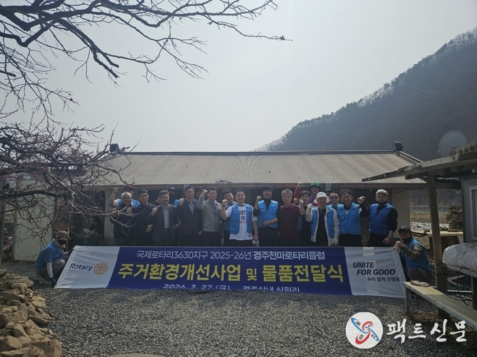 김명진 경주천마로타리클럽 회장은 “어려운 이웃에게 주거환경개선 봉사사업을 통해 편안한 보금자리를 만들어드린 것 같아 기쁘다”며 “앞으로도 나눔이 필요한 분들께 지속적으로 봉사활동을 이어갈 것 ”이라고 말했다.