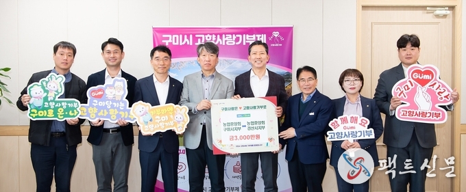 기탁식에는 김장호 구미시장, 조현일 경산시장, 김택동 동구미농협 조합장, 송영민 와촌농협 조합장, 이승철 NH농협 구미시지부장, 이재근 NH농협 경산시지부장이 참석했다. 금차 상호기부는 지난해에 이어 지역과 농민을 사랑하는 마음을 전하기 위해 범농협 임직원들의 자발적인 참여로 마련되었으며 구미시와 경산시의 관내 농축협 임직원들은 구미시와 경산시에 각각 3,000만원을 기부하였다.